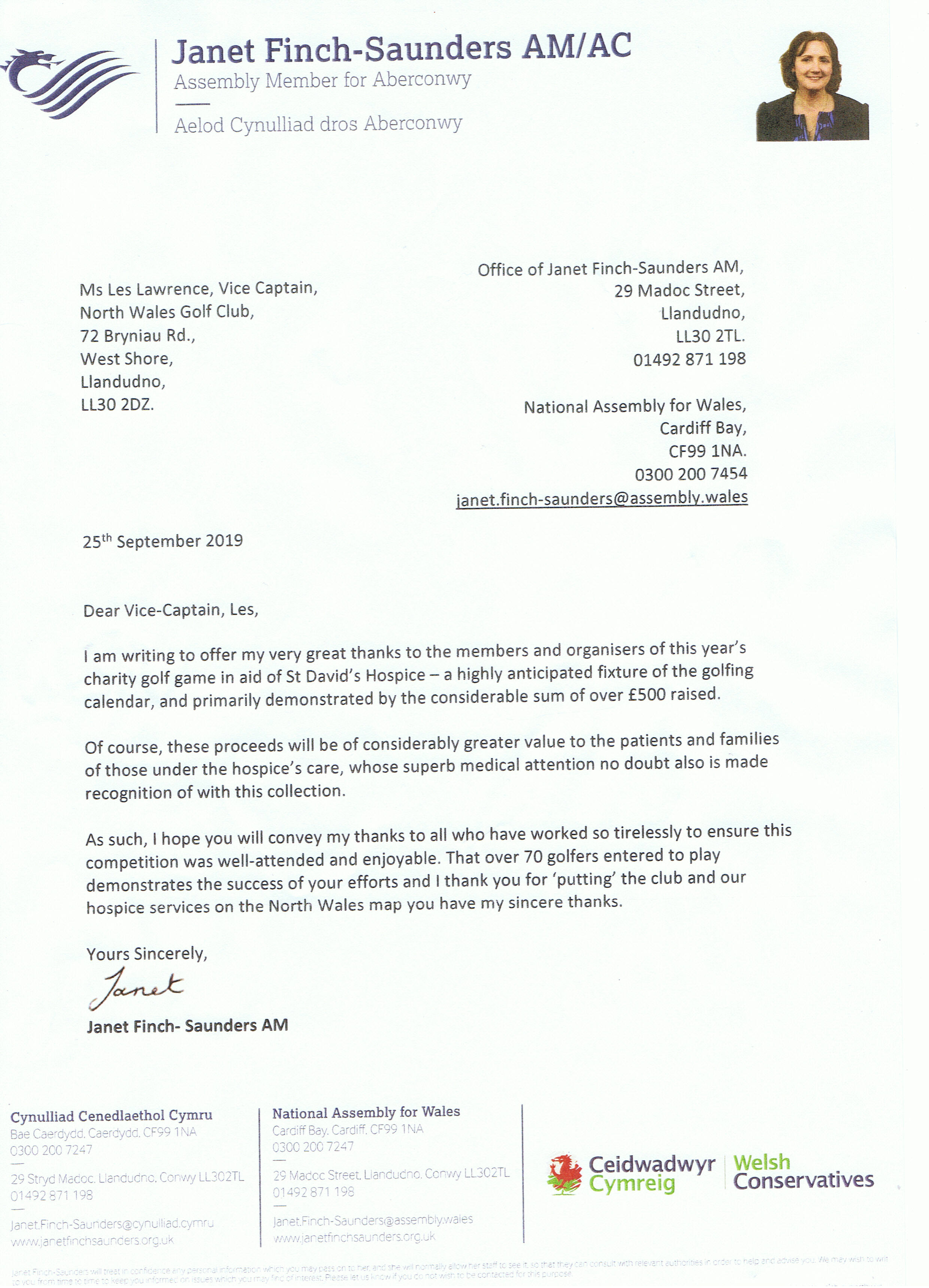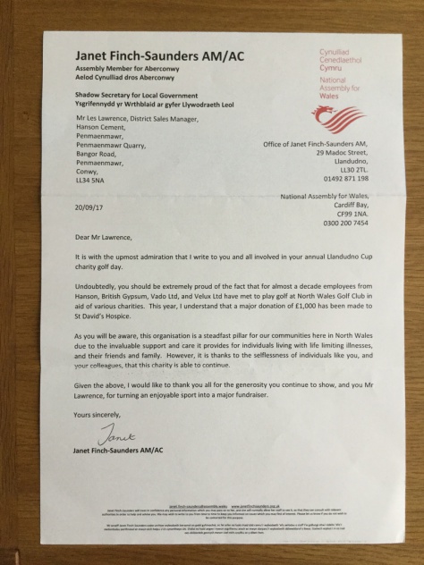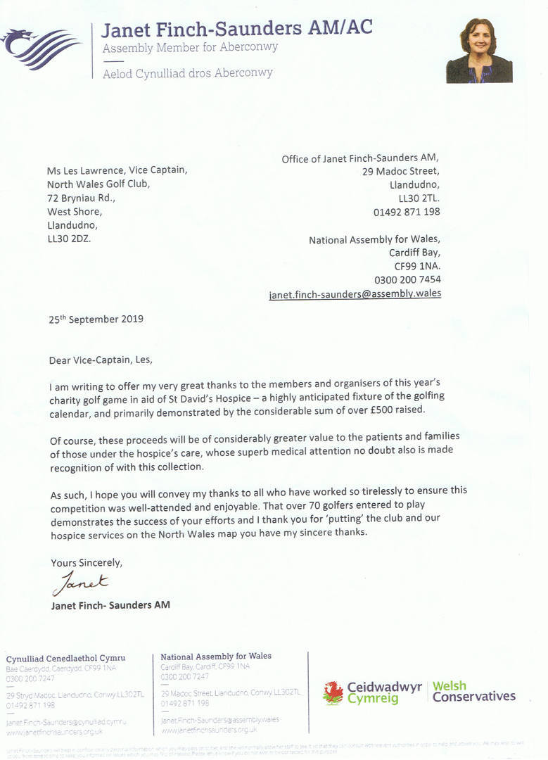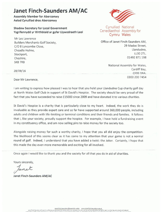 Welsh Assembly Letter - Llandudno Cup 2017 - BMGS Members involved in June 2017