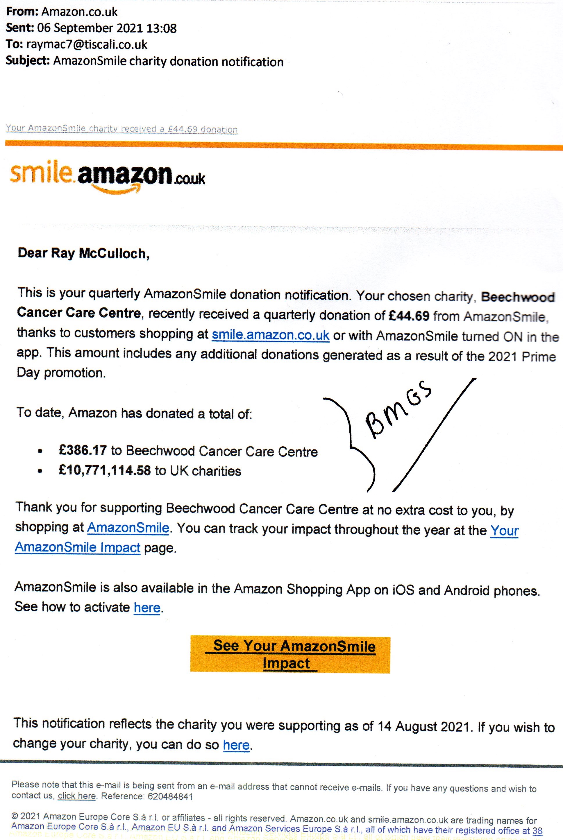 We have just noticed your incredibly kind donation to Callum’s Gofundme page. The family have been touched by your generosity and Callum asked me to drop you a line to express our eternal gratitude.