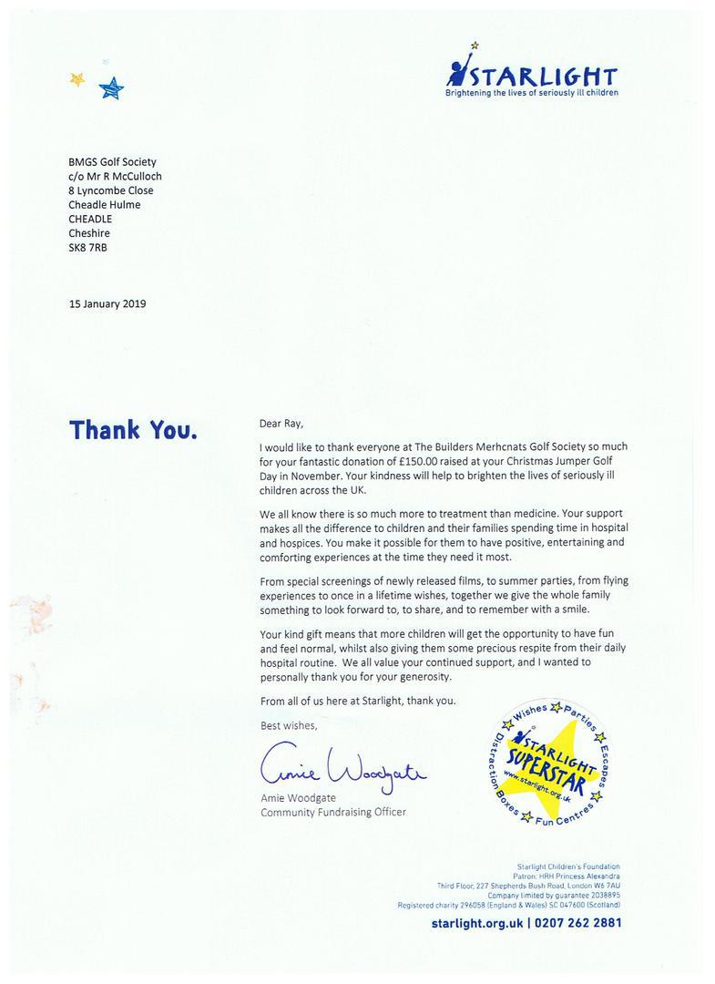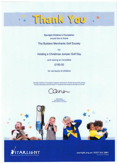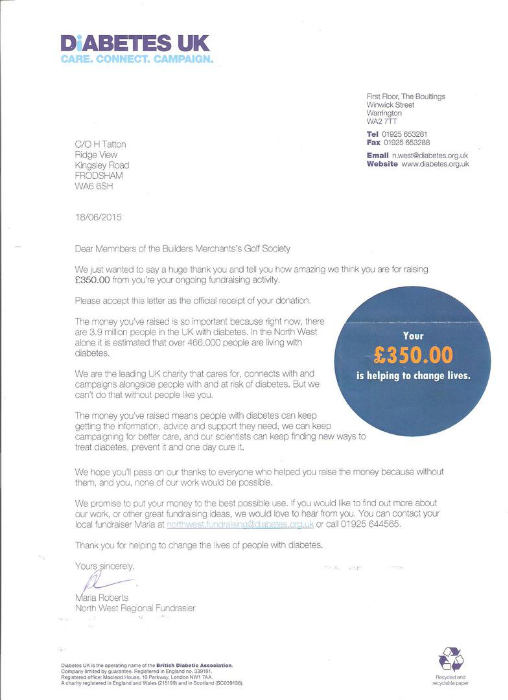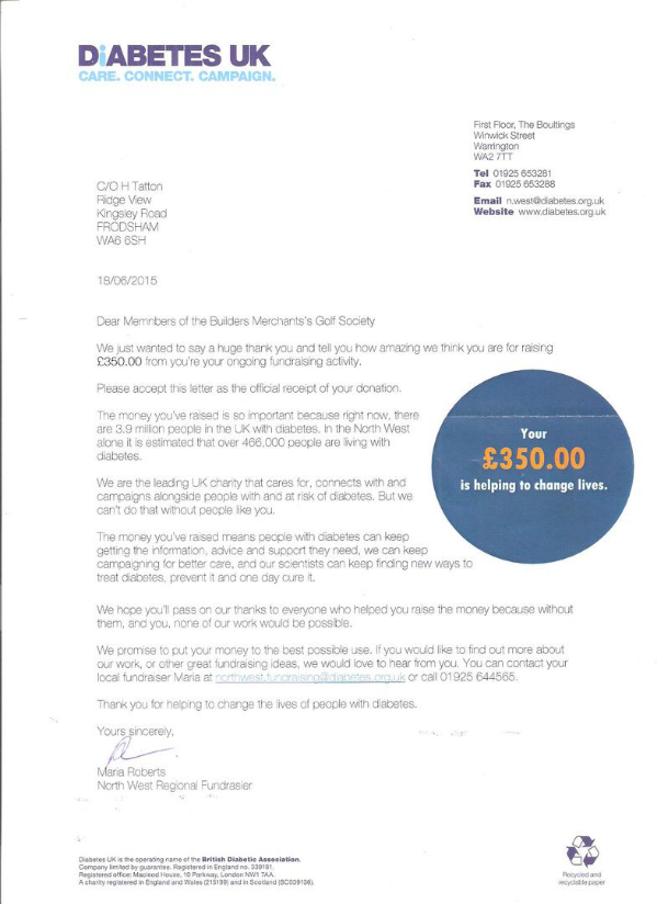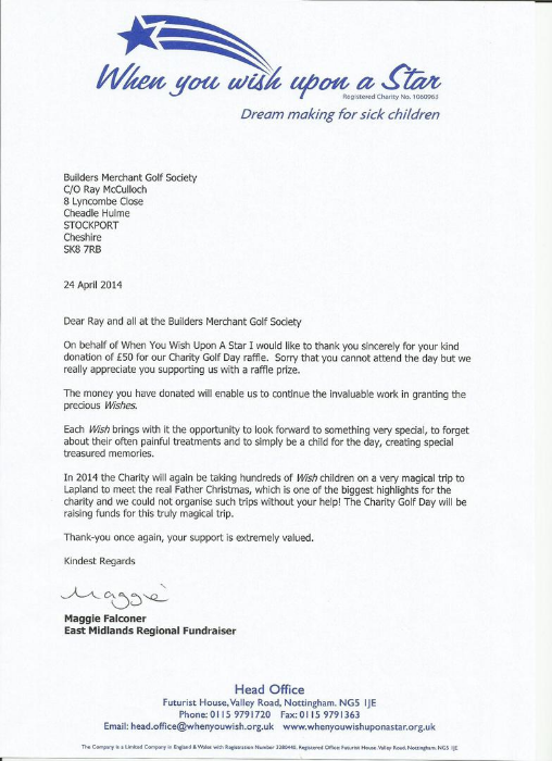 Various Downloads of Letters Acknowledging the Donations made by the Builders Merchants Golf Society
