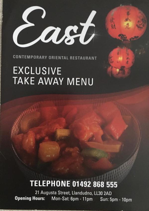 East Restaurant in Llandudno - 23 Augusta Street near the Railway Station